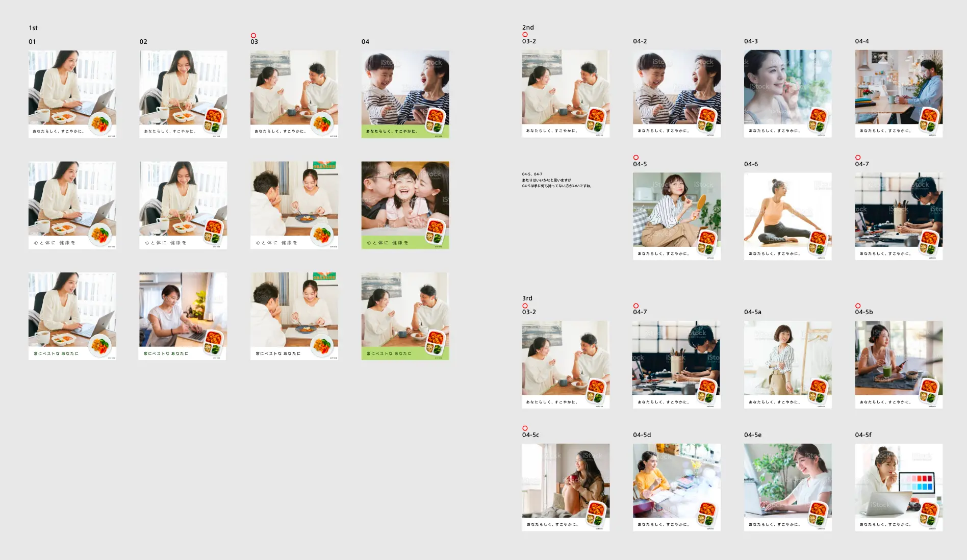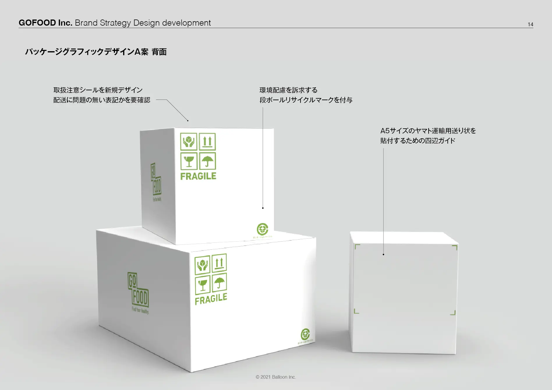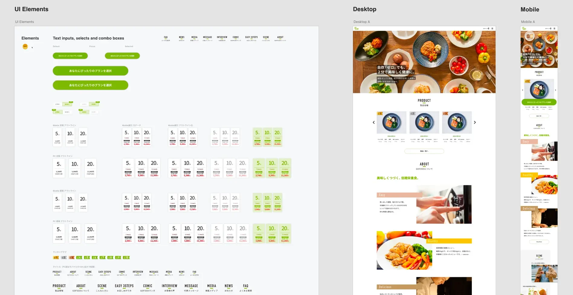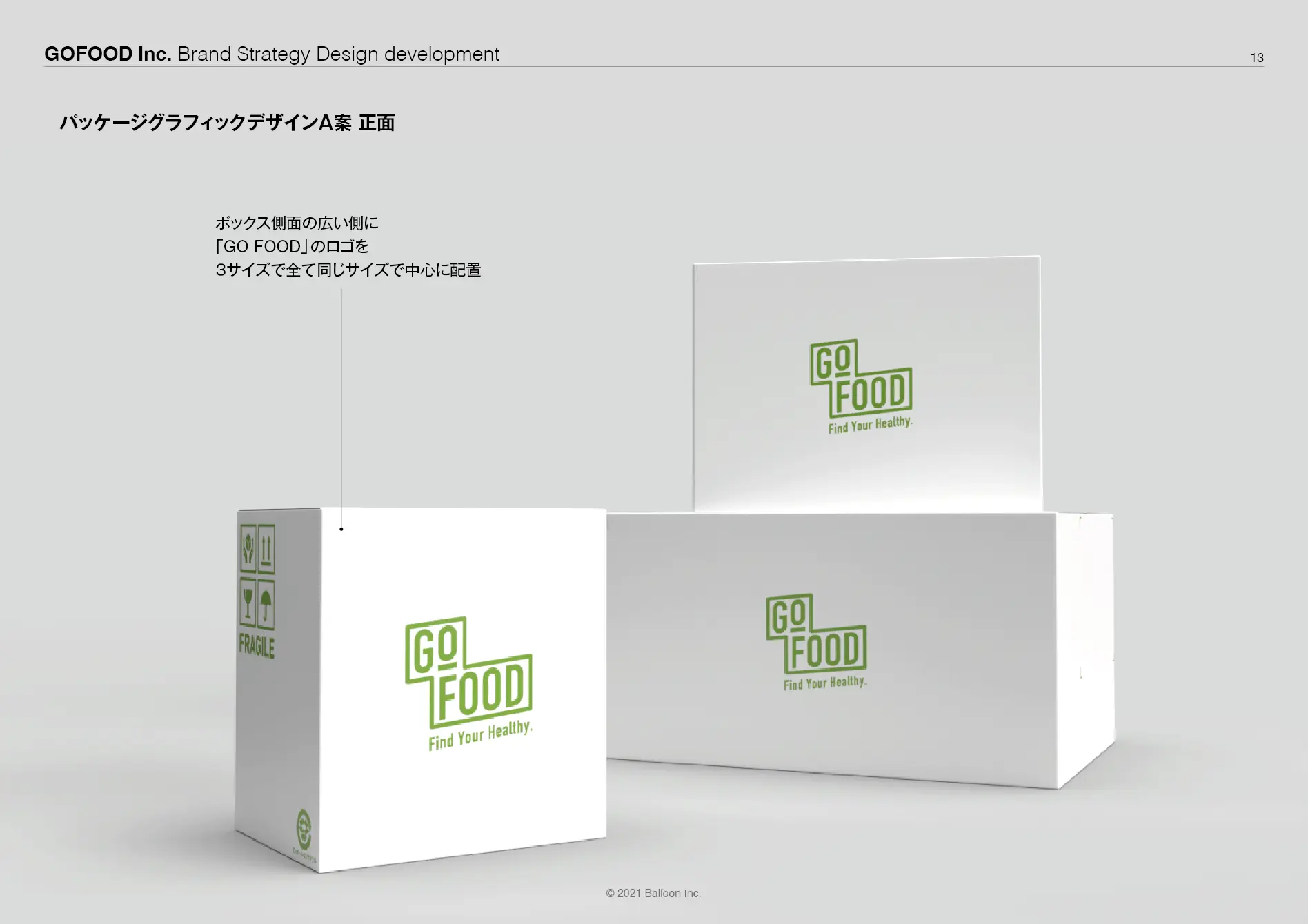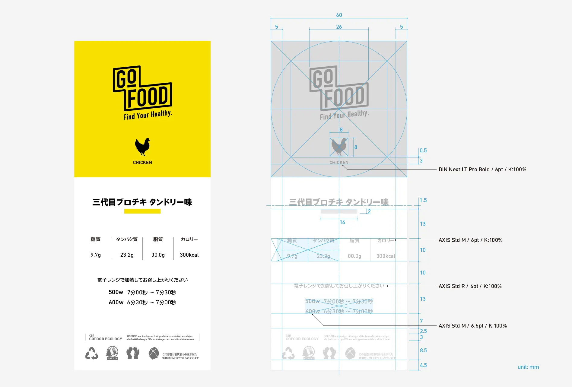 全てのアイテムのデザインは、グリッドにより配置を整え、全体のバランスを調整しながらまとめていきます。GOFOODブランド全体の品質を高め、一貫した印象を与えるために不可欠なデザインです。